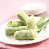 Ambil satu lembar dadar, sendokkan bahan isi. Lipat kanan kiri dan gulung.